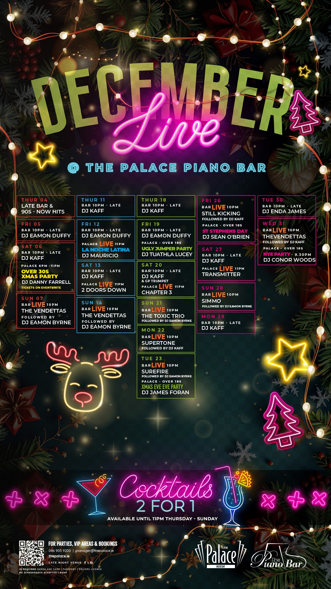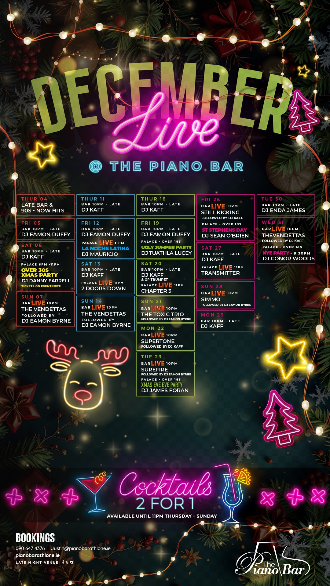 Piano Bar - Live music at 10pm from THE VENDETTAS followed by DJ Eamon Duffy from 10pm